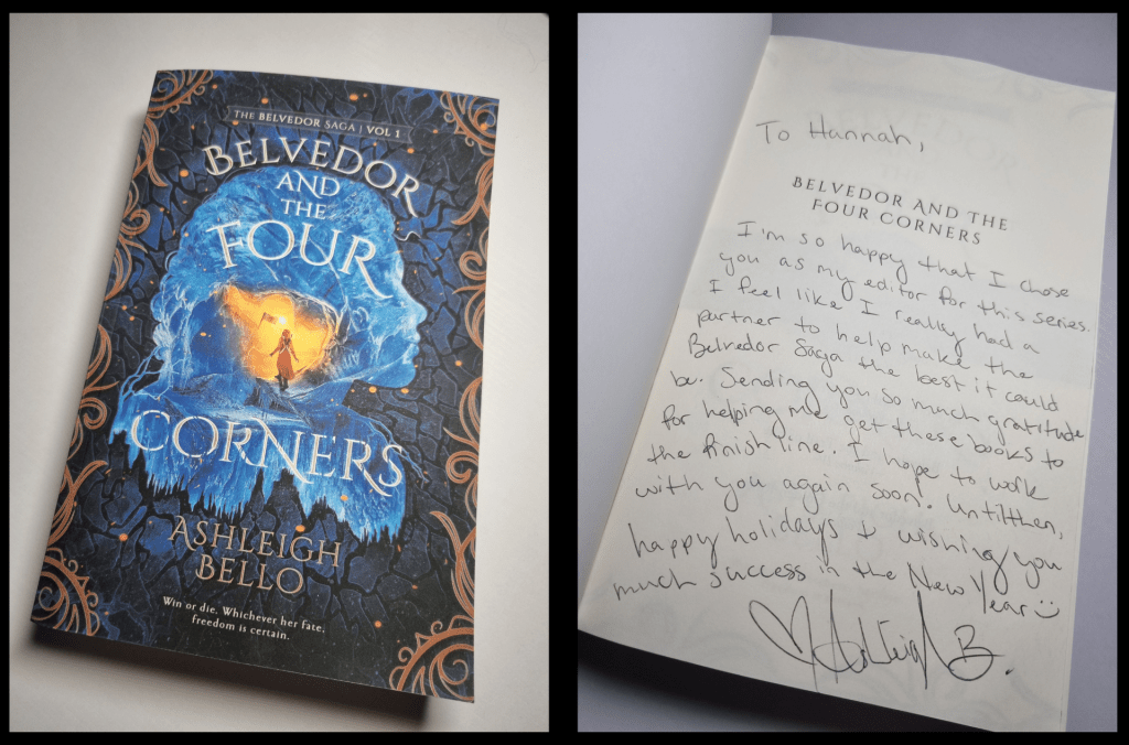 Ashleigh’s very kind words made me a bit teary when I read them. I can’t really express just how much it means when a client takes the time to do something like this. It makes all the tough times worthwhile. I look forward to working together again soon. I know – spoiler alert – there’s a Belvedor prequel coming in 2023 and I can’t wait to find out what happens!